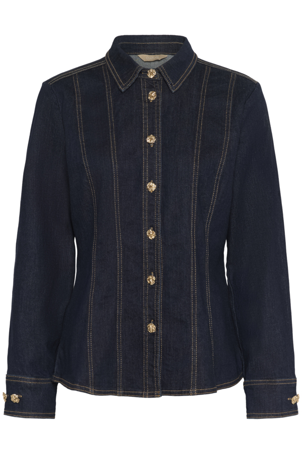 Cool facon syet denim skjorte fra Culture. Skjorten har en flot mørk denim vask med klassik skjortekrave og flotte forgyldte knapper ned foran.