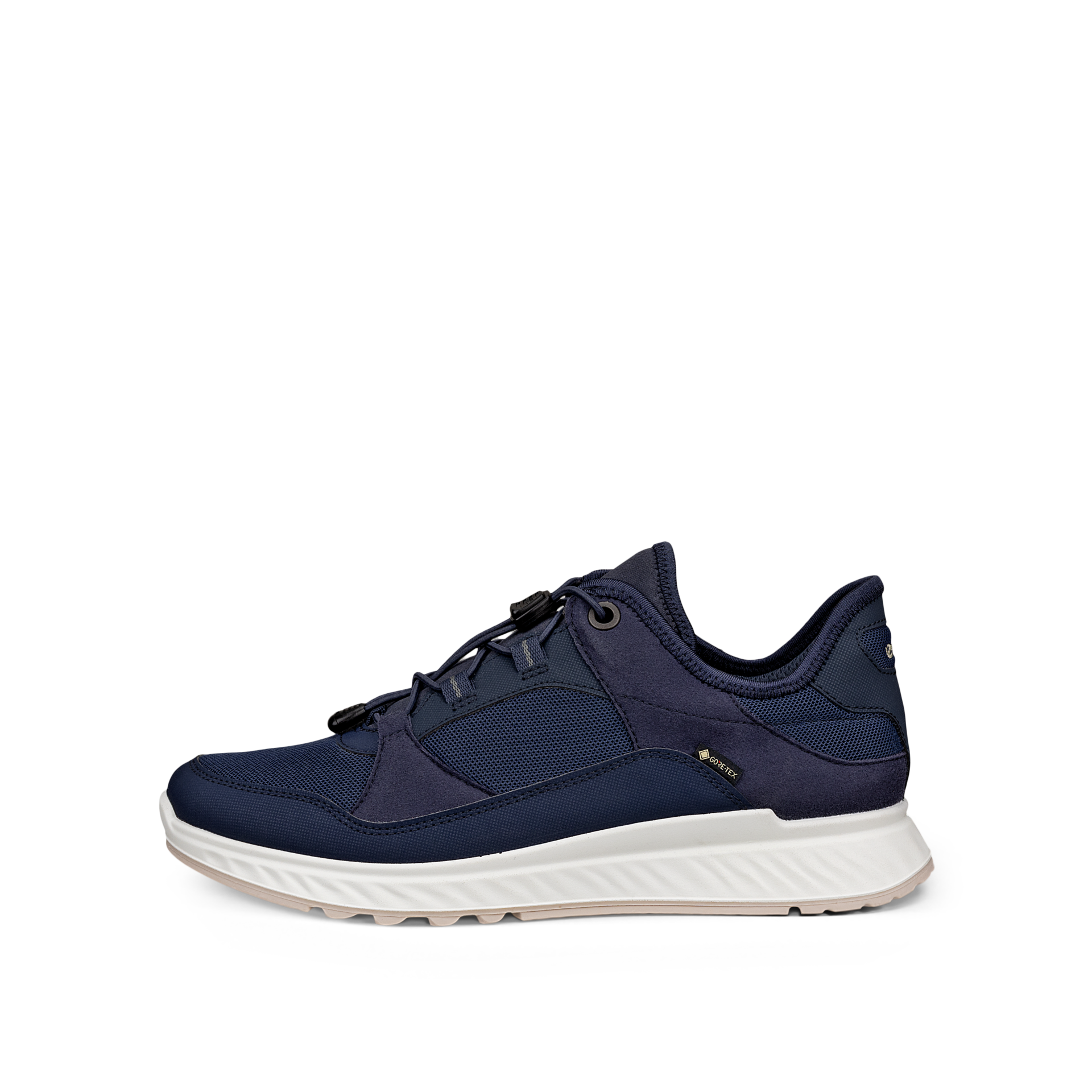 Outdoor sneakers fra Ecco Exostride i et sporty design lavet i syntetiske materialer, elastiksnørebåndet gør det utrolig nemt og trække den på foden og Gore-Tex membranden der er 100% vandtæt og åndbar sikre tørre fødder i alt slags vejr. Indvendigt er skoen tekstilforet og har en udtagelig indlægssål. Den solide ydersål er lavet i gummi og giver en fleksibel gang og god støddæmpning