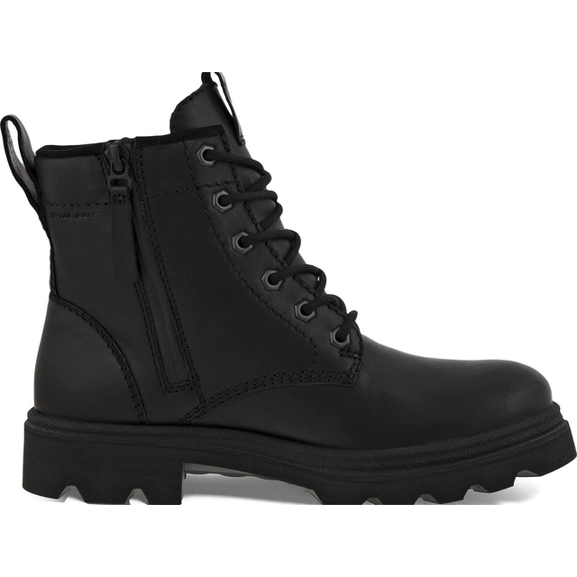 Smart damestøvle fra ECCO, som er designet med en robust og praktisk tilgang, perfekt til efterårs- og vinterbrug. Støvlen har sort læder og er udstyret med snøre foran for en justerbar pasform, samt en tyk, slidstærk sål med godt greb.