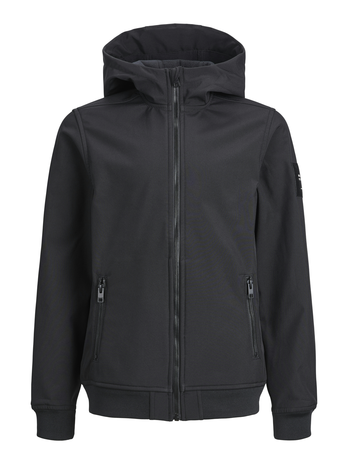aftagelig hætte, som fæstnes med trykknapper og velcro. Jakken er lettere foret med fleece og broderet på indersiden. Den har lynlås hele vejen ned og er med indvendig vindstolpe.