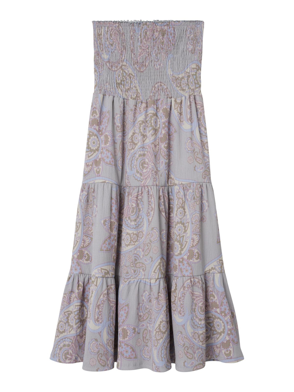Midi-kjole i blomster print med justerbare spaghettistropper samt smocksyet liv.