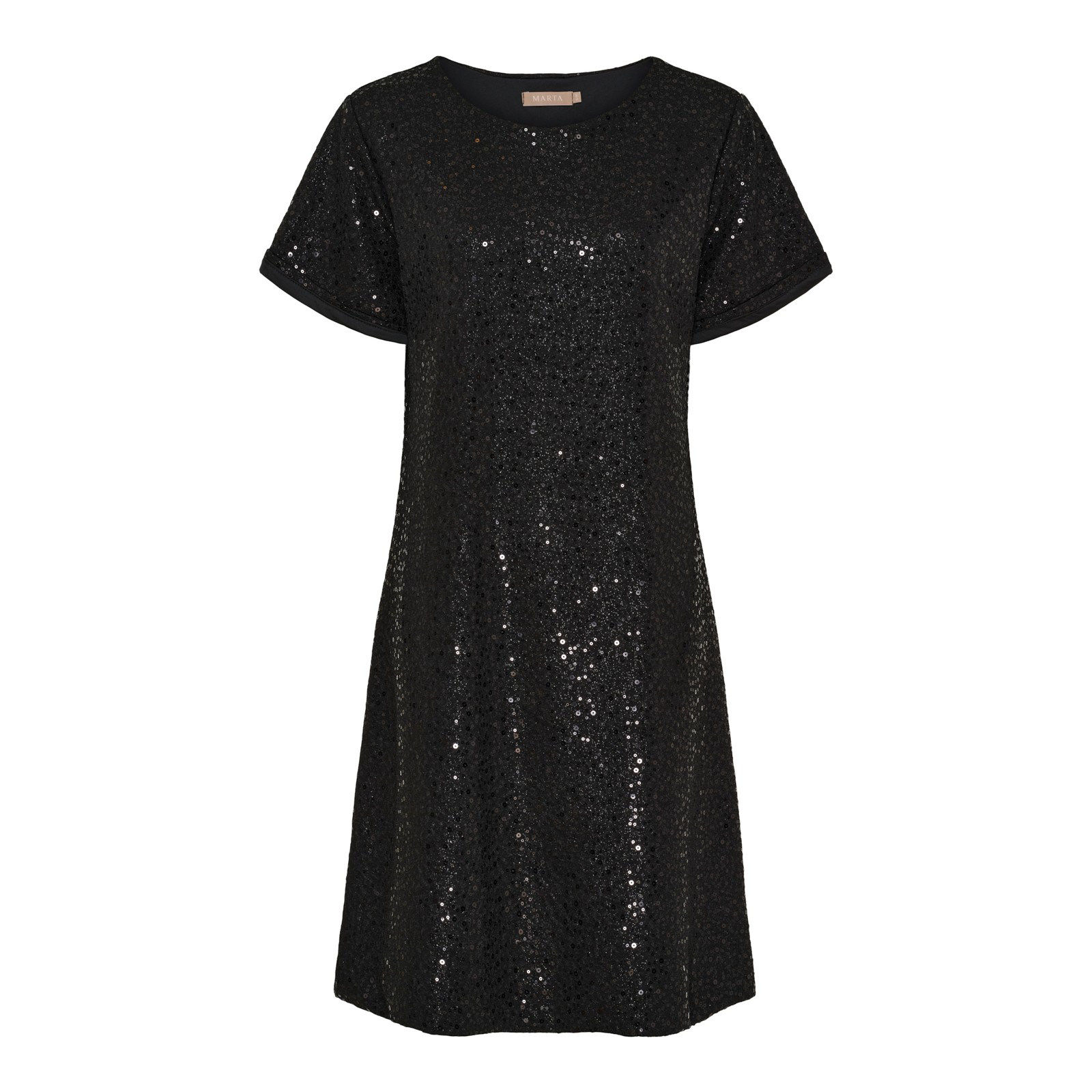 Kjole i afslappet pasform, perfekt til både hverdag og festlige lejligheder. Kjolen har midi længde og elegante 3/4 ærmer. Fremstillet af 100% viskose, der giver en behagelig og holdbar kvalitet.