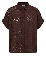 Feminin og luftig Culture bluse med korte ærmer, i en lækker bomulds/ hør kvalitet. Blusen har fine broderi detaljer og flæsedetalje på kraven. Den har et afslappet og let boheme agtig udtryk. Style den til jeans eller shorts.