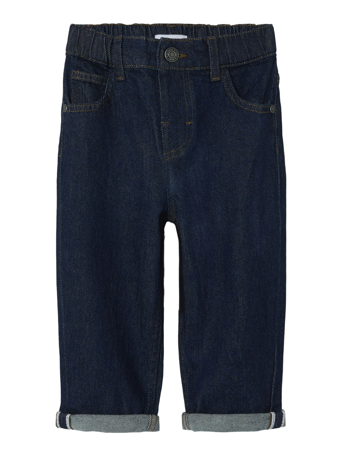 Name It Jeans i x-slim fit til dreng. De er i en lys denim med trykknaplukning og halv, falsk gylp.