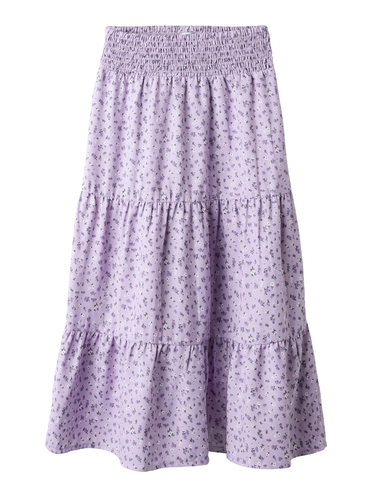Super smuk kjole fra Name It i beige med fint blomsterprint over det hele. Kjolen har elastiske manchetter, knap og løkkelukning bagpå og er lav i taljen.