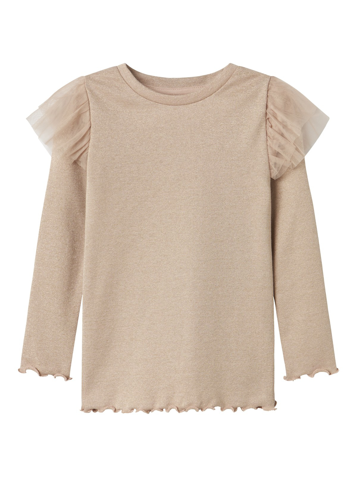 Super sød Hummel body i rosa eller grøn. Foran er der print med logo. Bodyen har lange ærmer med flæser, og den har praktiske trykknapper på venstre skulder og mellem benene.