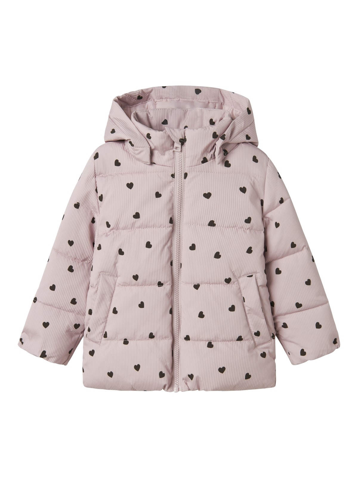 Super smuk termojakke i lys rosa med smukt blomstret print over det hele. Den er lavet af vandtæt stof og er derfor ideel til alle former for udendørs aktiviteter. Denne jakke er udstyret med flere refleksdetaljer, så dit barn forbliver synligt i trafikken.
