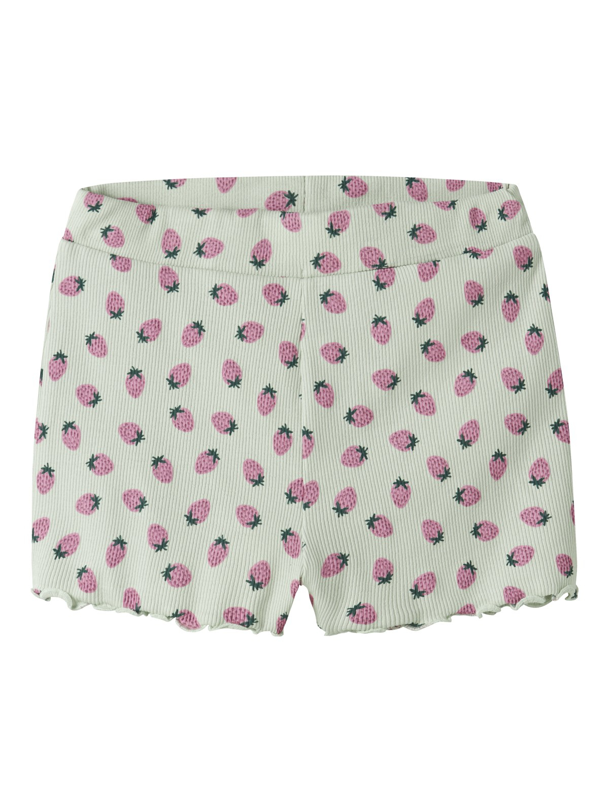De sødeste Salli shorts fra Name It. Shortsene har trykknaplukning og halv, falsk gylp. Modellen er slim fit og du kan dertil justere elastikket i taljen efter behov.