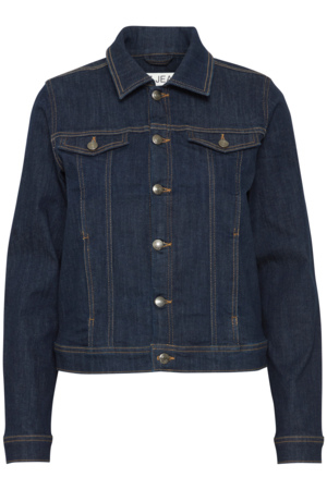 Cool denim jakke fra Pulz Jeans. Jakken har krave, brystlommer, stiklommer og åbnes med knapper. Denim jakken er uundværlig i enhver garderobe. Her er den kommet i en super flot mørk unwashed denim farve. Brug den over kjoler eller en cool T-shirt.