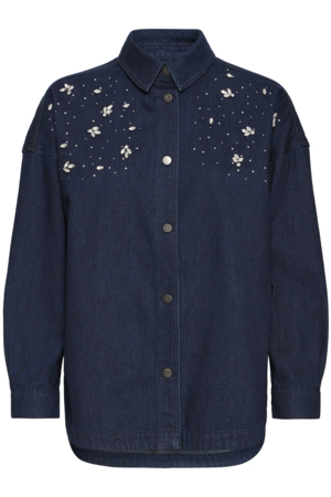 Pulz Jeans står bag denne klassiske denim skorte med moderne kant. Skjorten har en flot mørkeblå denim vask og er dekoreret med glimtende sten øverst på fronten. Den har et afslappet snit og er fremstillet i en blød bomuldsblanding. Skjorten er ideel til både hverdag og et smart casual look.