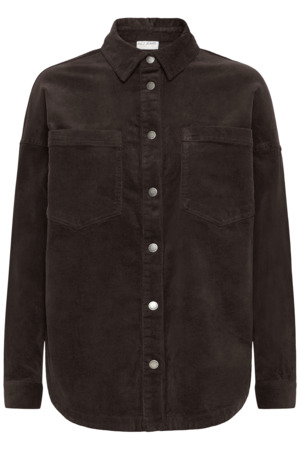 Lækker skjorte fra Pulz Jeans i det blødeste babyfløjl. Skjorten har en klassisk krave, store brystlommer og trykknapper ned foran. Den er flot afrundet nedest med en lille slids i siderne. Brug den lukket eller åbentstående over en t-shirt.