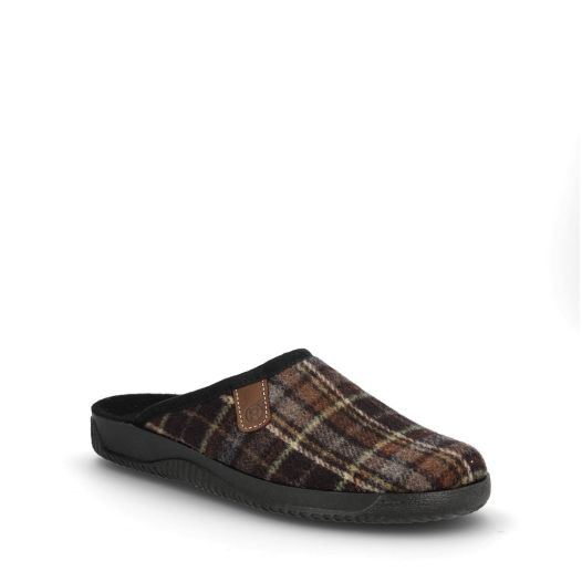 Pæn hjemmesko fra Rohde til herre. Den er i en flot moccafarvet filt. Indvendigt er den foret med filt og har en blød dæksål i ruskind med svangstøtte.