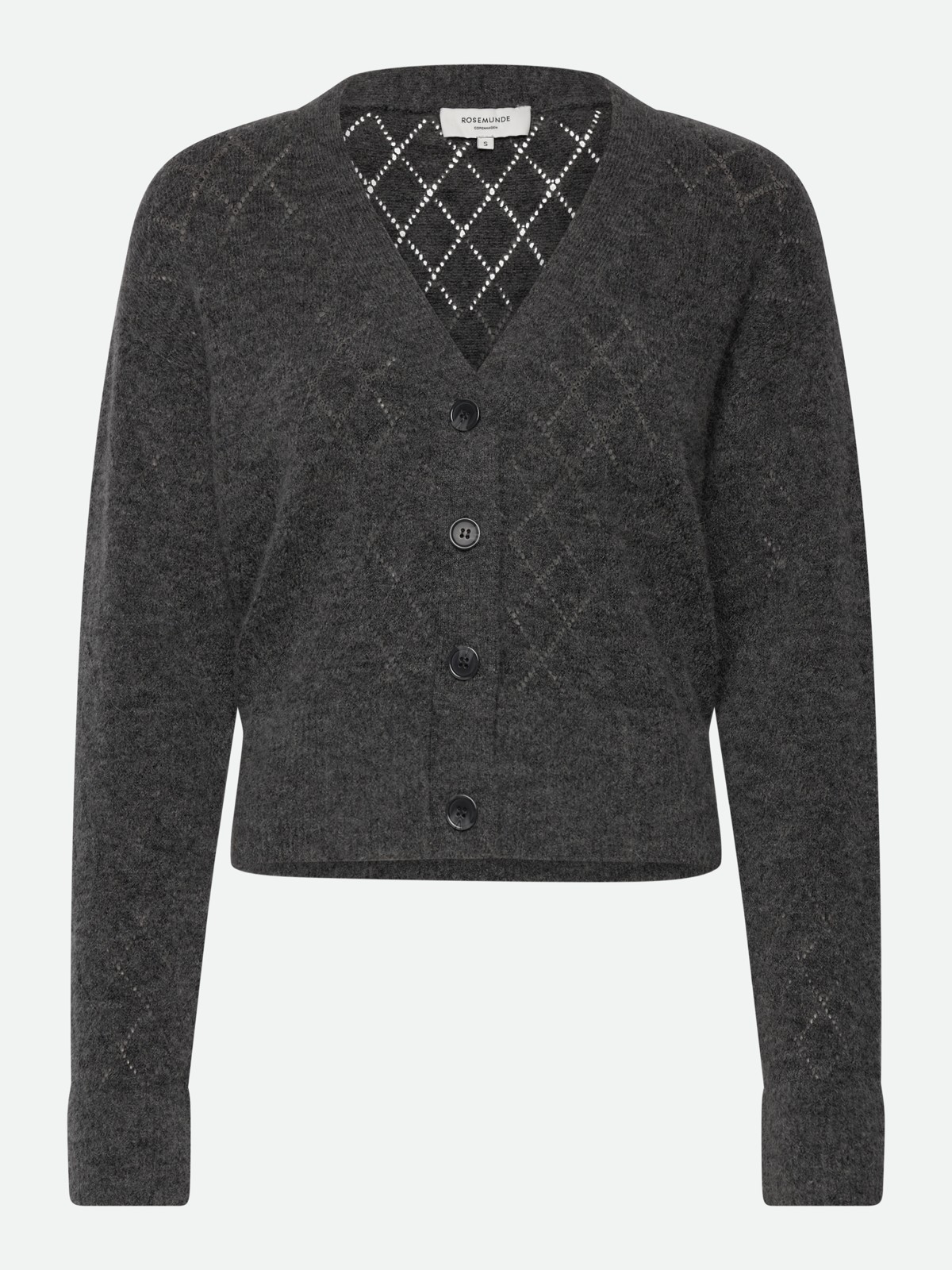 Blød og lækker Culture cardigan til basic garderoben. Den er gennemknappet med små fine perlemors knapper og har ribkant på en runde hals, ærmekant og bund kant.