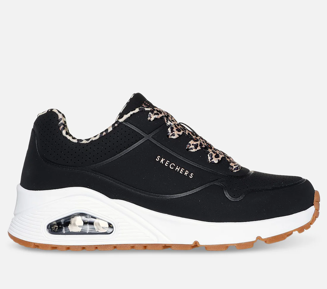 Snørelukket modesneaker med syntetisk durabuck-overdel og leopardprint-detaljer.