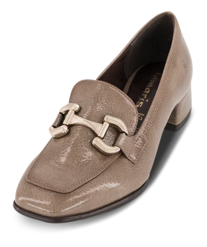 Håndlavede loafers i mørkebrunt laklæder med rund snude. Loaferen er dekoreret med en læderrem med sølvdekoration på forfoden. Loaferen har også piping på forfoden og bagpå for ekstra dekoration.