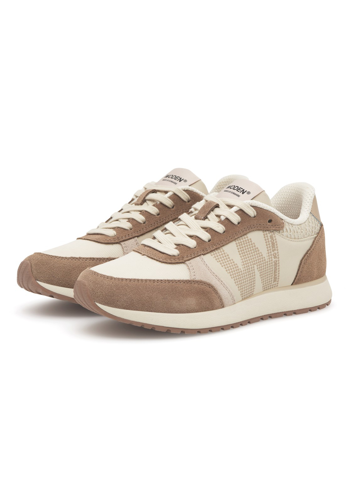 Smart ECCO damesneaker i lækkert hvidt skind med struktur. Skoen har hvid snøre. Den har brune skind-detaljer på bagkappe samt en hvid skind-dæksål. Skoen er både fin til hverdag, men også til fester. OBS: Der står ikke Ecco logo på ydersiden.